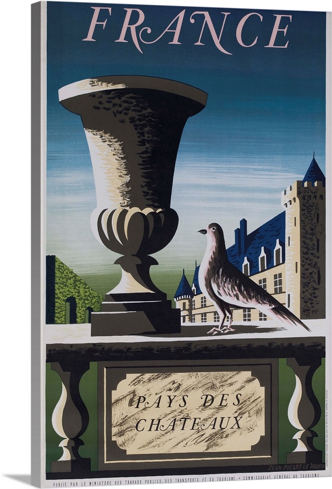 <p>1950 French travel poster illustrated by Jean Picart le Doux showing stylized chateaux and garden scene.</p>