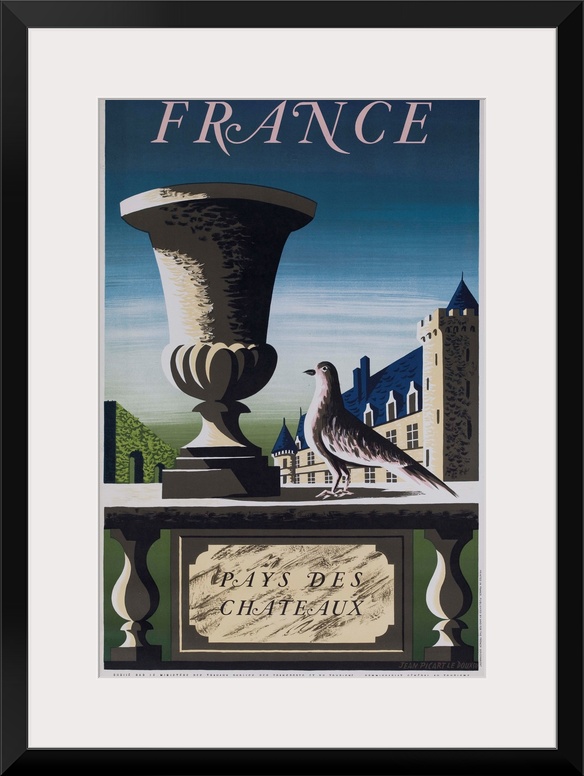 <p>1950 French travel poster illustrated by Jean Picart le Doux showing stylized chateaux and garden scene.</p>