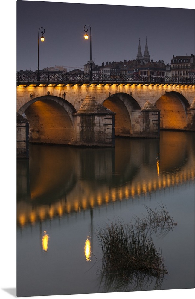 <p>France, Saone-et-Loire Department, Burgundy Region, Maconnais Area, Macon, Pont St-Laurent bridge, evening</p>