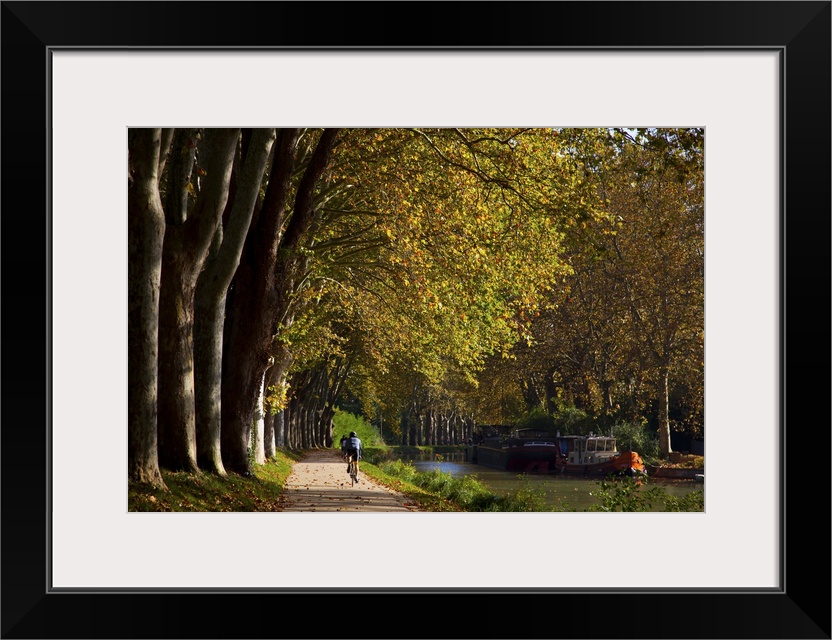 <p>France, Midi-Pyrenees, Canal du Midi, Toulouse, Cycling along the Canal du Midi in the fall.</p>