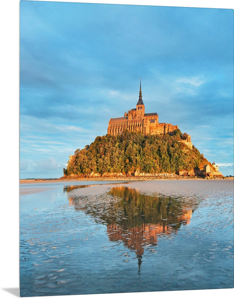 <p>France, Normandy, Atlantic ocean, English Channel, Basse-Normandie, Mont Saint-Michel The abbey at sunset.</p>