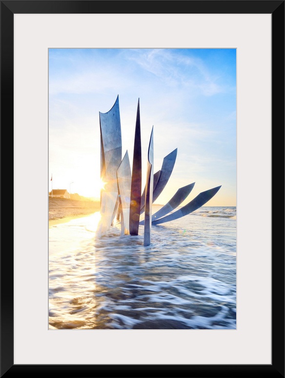 <p>France, Normandy, Omaha Beach, A sculpture called The Braves by artist Anilore Banon located on Omaha beach, surely the most famous among the D-Day landing beaches.</p>