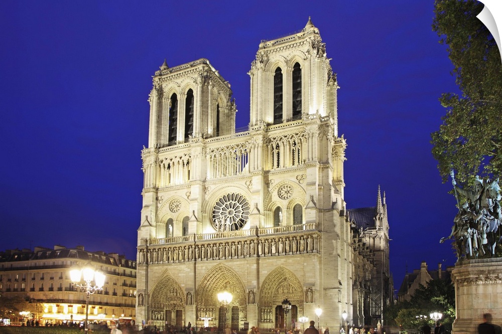 <p>France, Paris, Notre Dame Cathedral at night, Banks of the Seine UNESCO World Heritage</p>