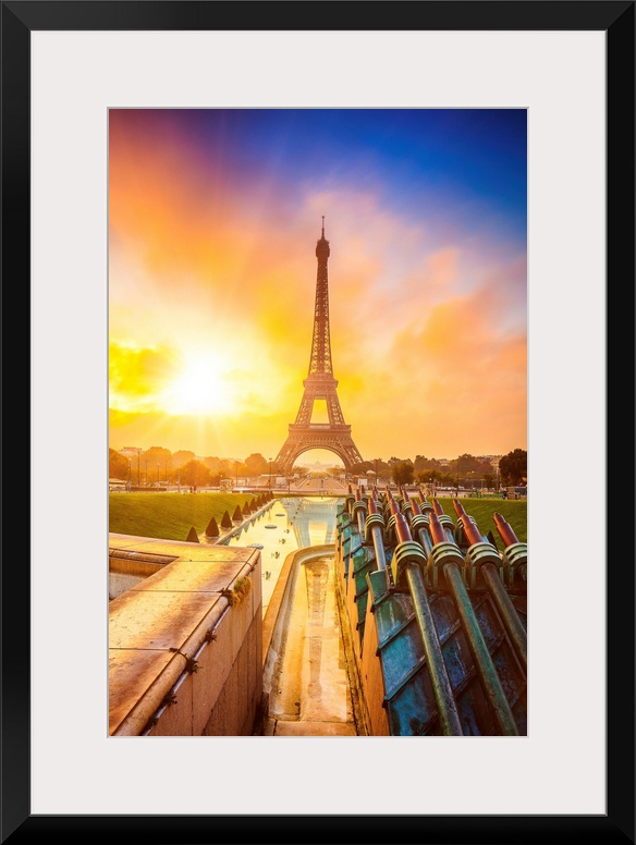 <p>France, Ile-de-France, Ville de Paris, Paris, Invalides, Trocadero Fountains, The Eiffel Tower at sunrise view from Trocadero.</p>