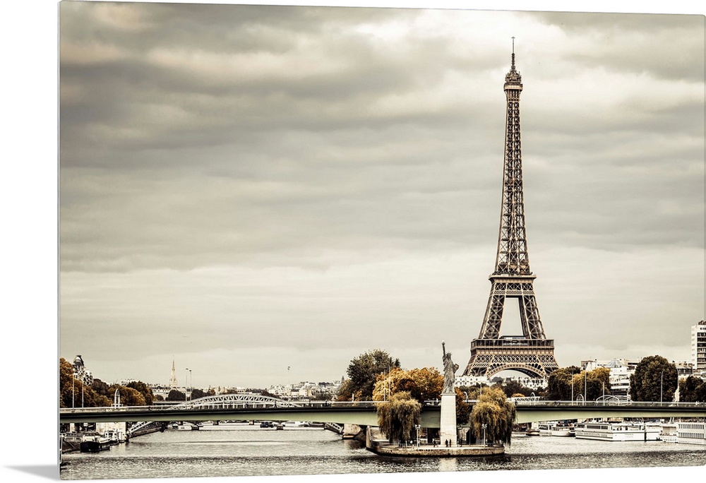 <p>France, Paris, River Seine with Replica of the Statue of Liberty, and Eiffel Tower in the background.</p>