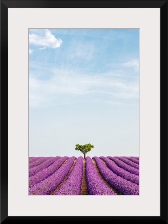 <p>France, Provence-Alpes-Cote d'Azur, Valensole, Lavender field on the plateau.</p>