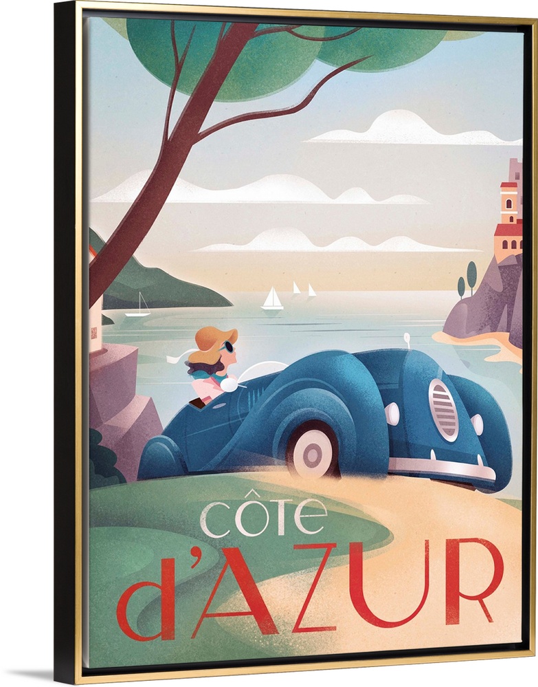 Art Decorative Art Graphic Art Beaches France Transportation Car Travel Posters Contemporary Travel Posters Martin Wickstrom
