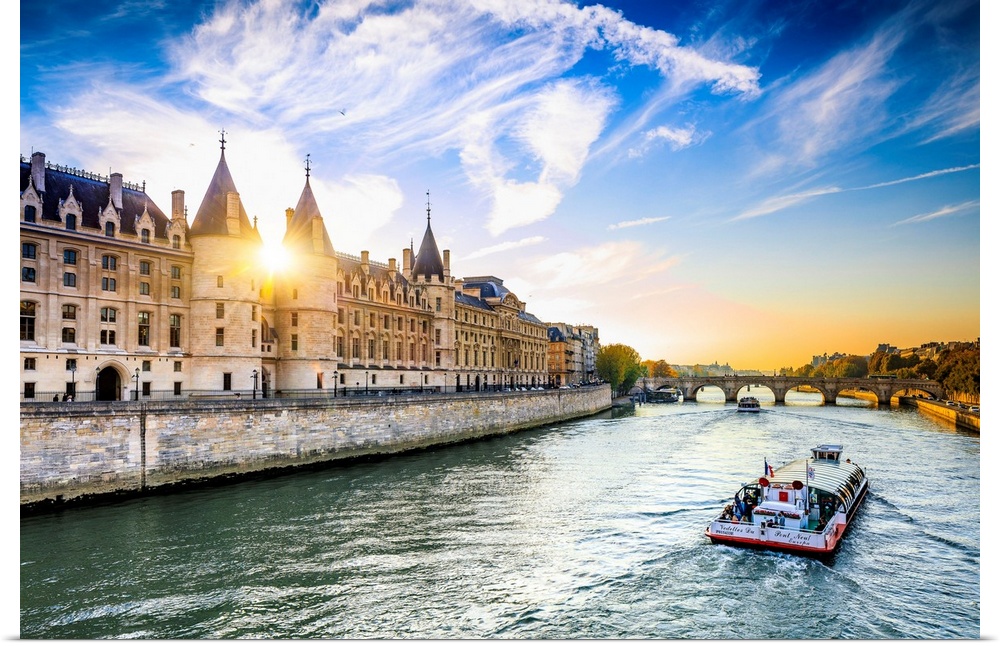 <p>France, Ile-de-France, Seine, Ville de Paris, Paris, Ile de la Cite, Ile Saint-Louis, The Conciergerie, part of the Palais de Justice, at sunset.</p>