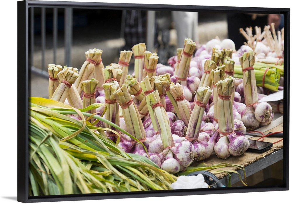 <p>France, St. Remy. Local Street market, garlic and onions.</p>