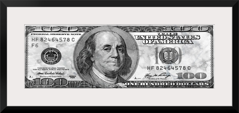 <p>The United States one hundred dollar bill in marble.</p>