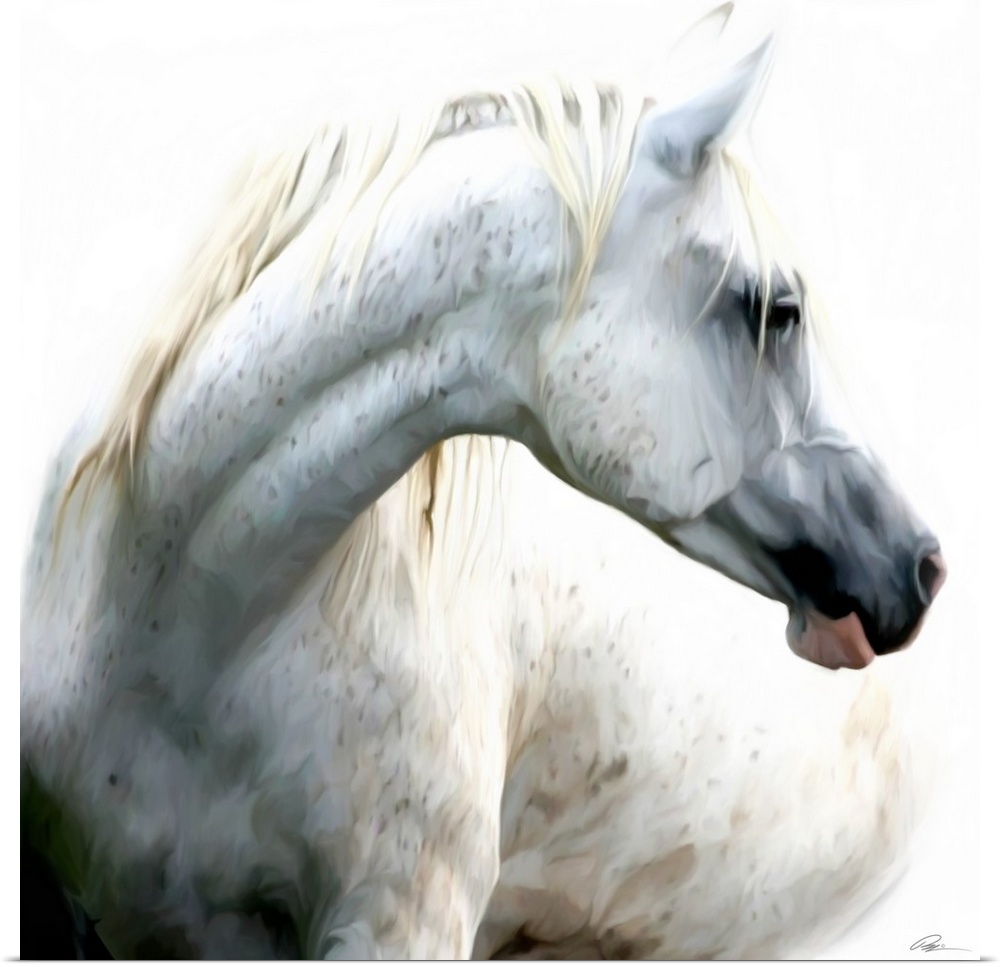 <p>Contemporary painting of a white horse looking proud and majestic.</p>