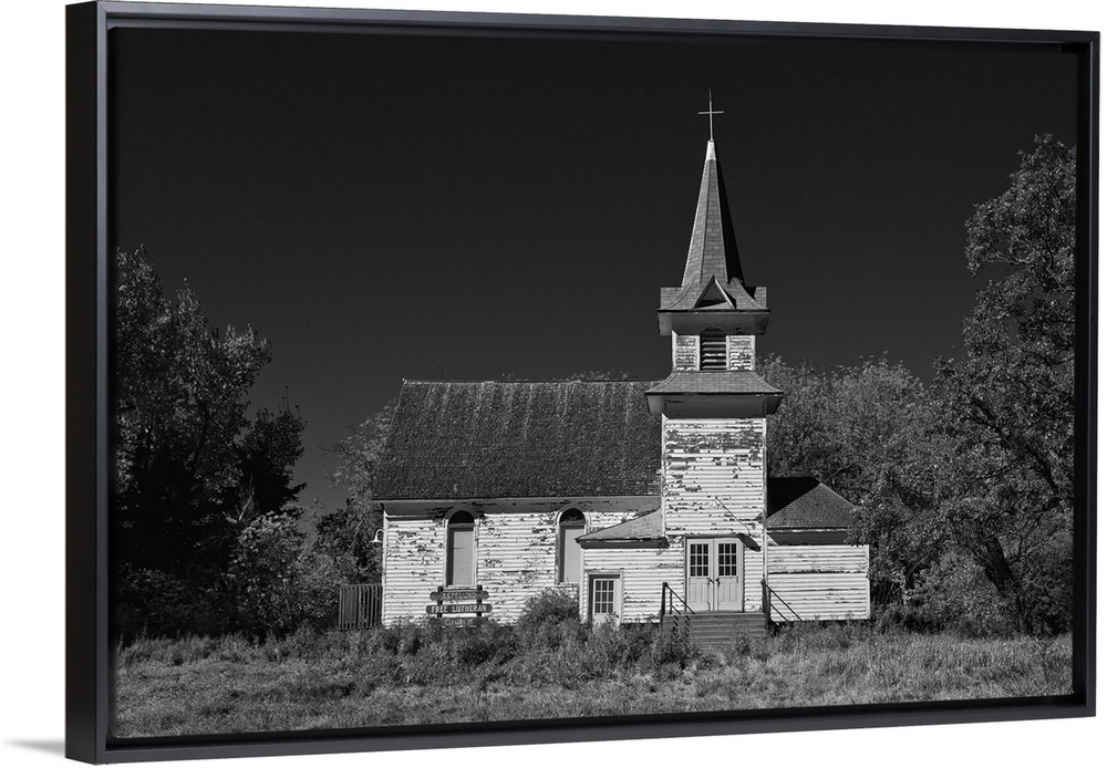 <p>Old church in rural landscape in Cavalier County USA</p>