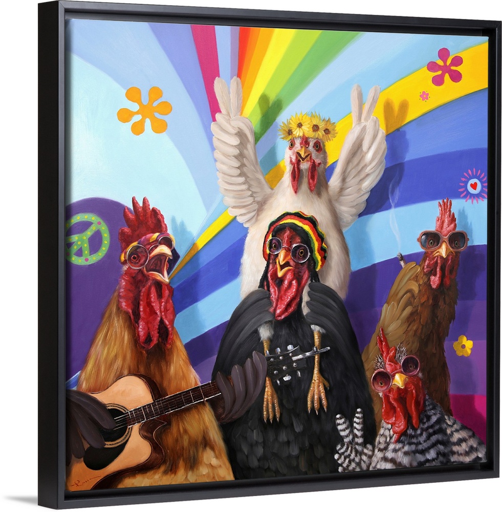 Art Lucia Heffernan Multicolor Wall Art Painting Surrealism Wildlife Bird Chicken