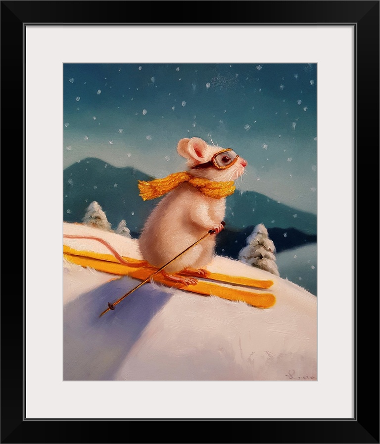 Art Four Seasons Winter Lucia Heffernan Painting Sports Skiing Wildlife Rabbit