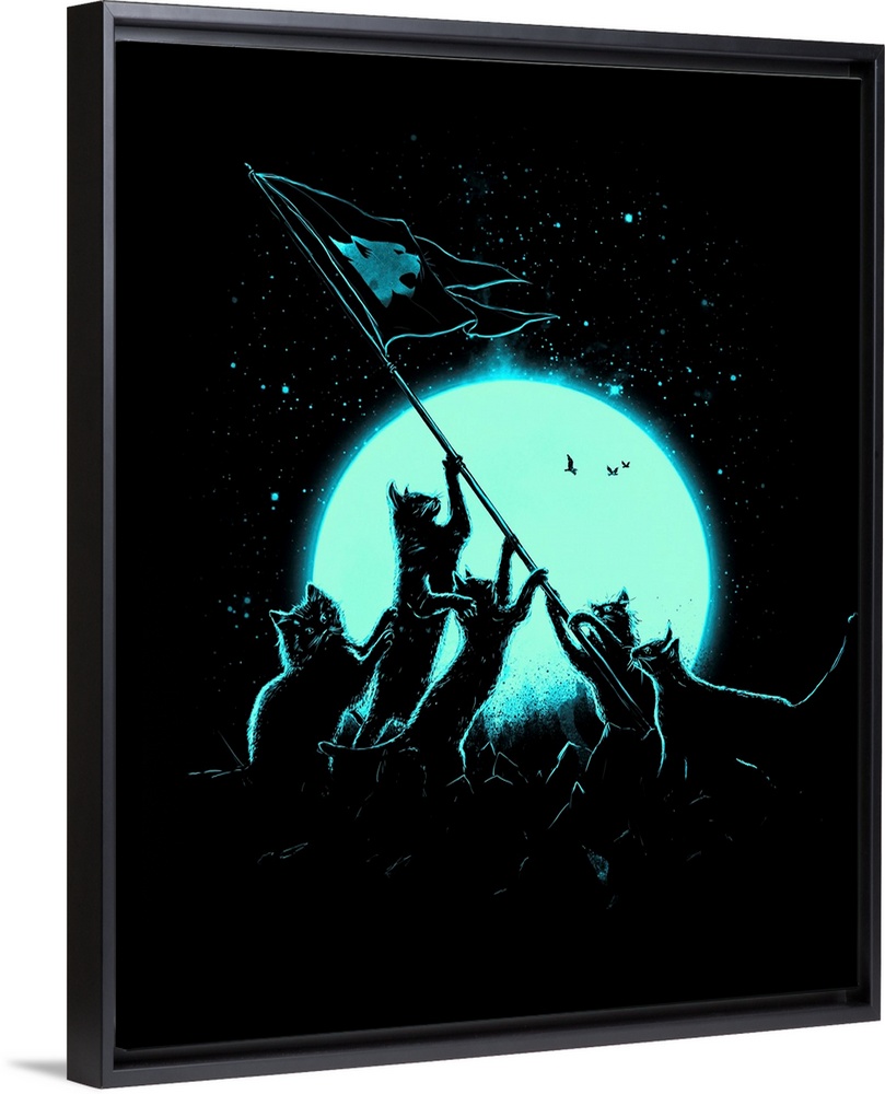 Art Nicebleed Art Blue Wall Art Decorative Art Fantasy Wildlife Graphic Art Space Moon Wildlife Cat