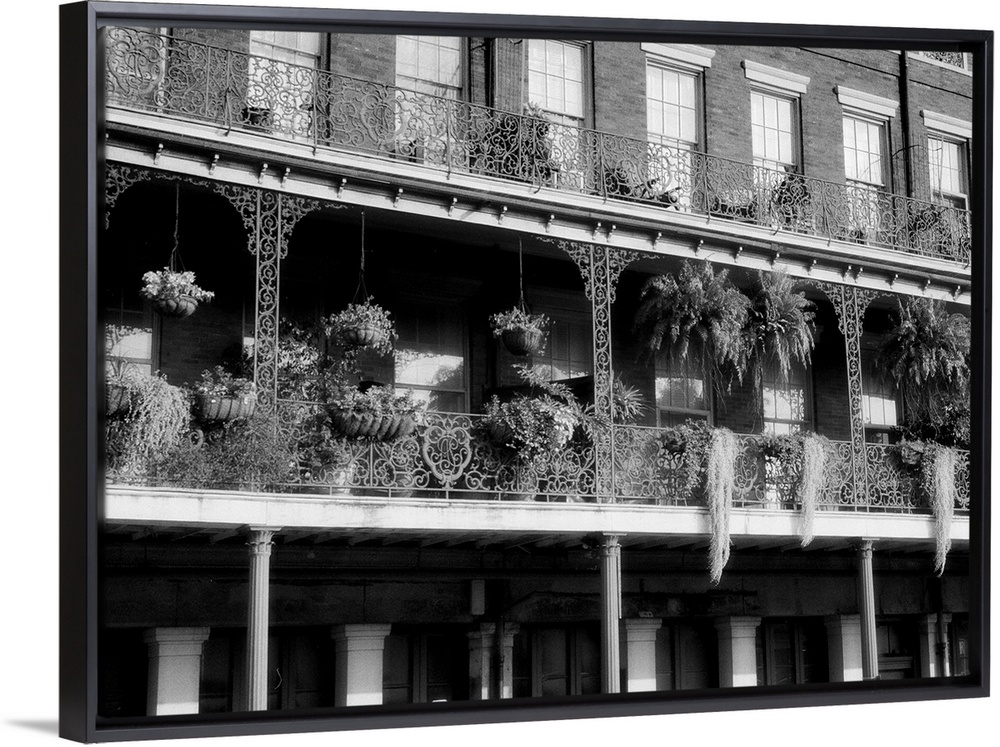 <p>Flowers and other plants cover ornate balconies in New Orleans, LA</p>