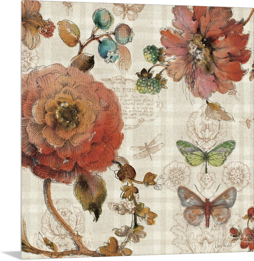 Art Traditional Living Room Art Lisa Audit Decorative Art Florals Painting Butterfly