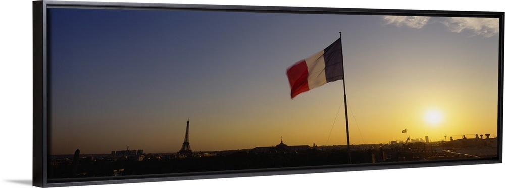 Flags Sunset City Sunsets Photography Scenery by Region Europe France Paris Eiffel Tower