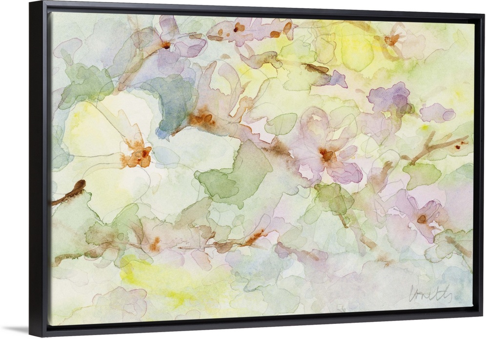 <p>Watercolor painting in soft pastels of blossoming flowers.</p>