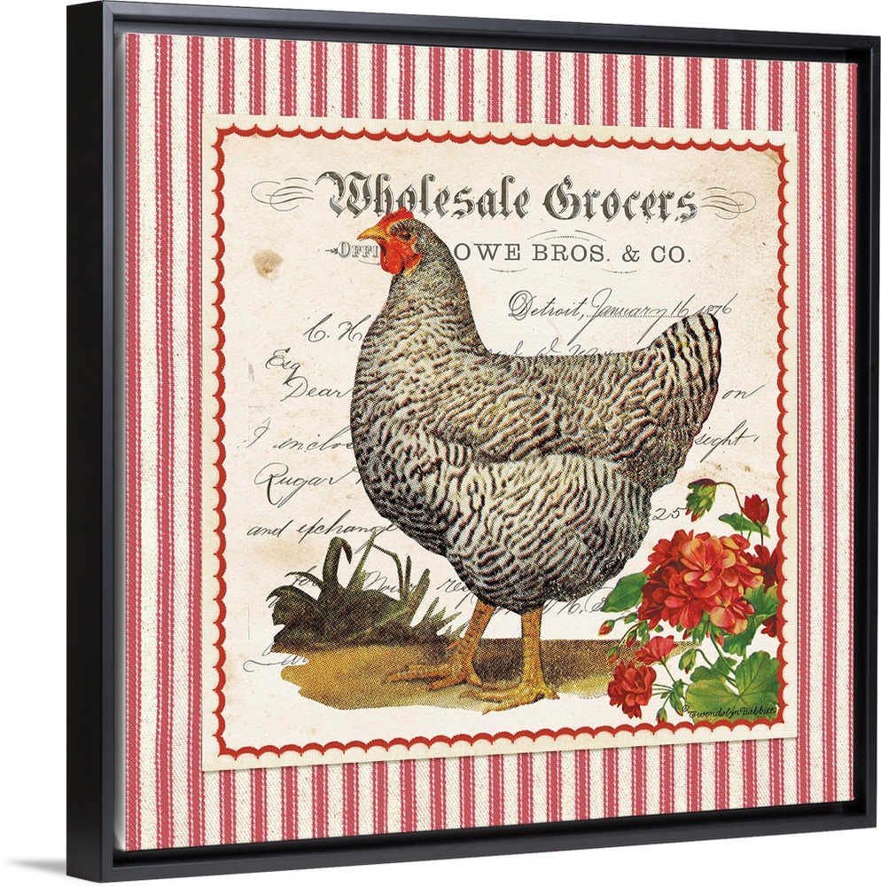 Art Gwendolyn Babbitt Decorative Art Florals Geranium Graphic Art Red Wall Art Wildlife Bird Chicken