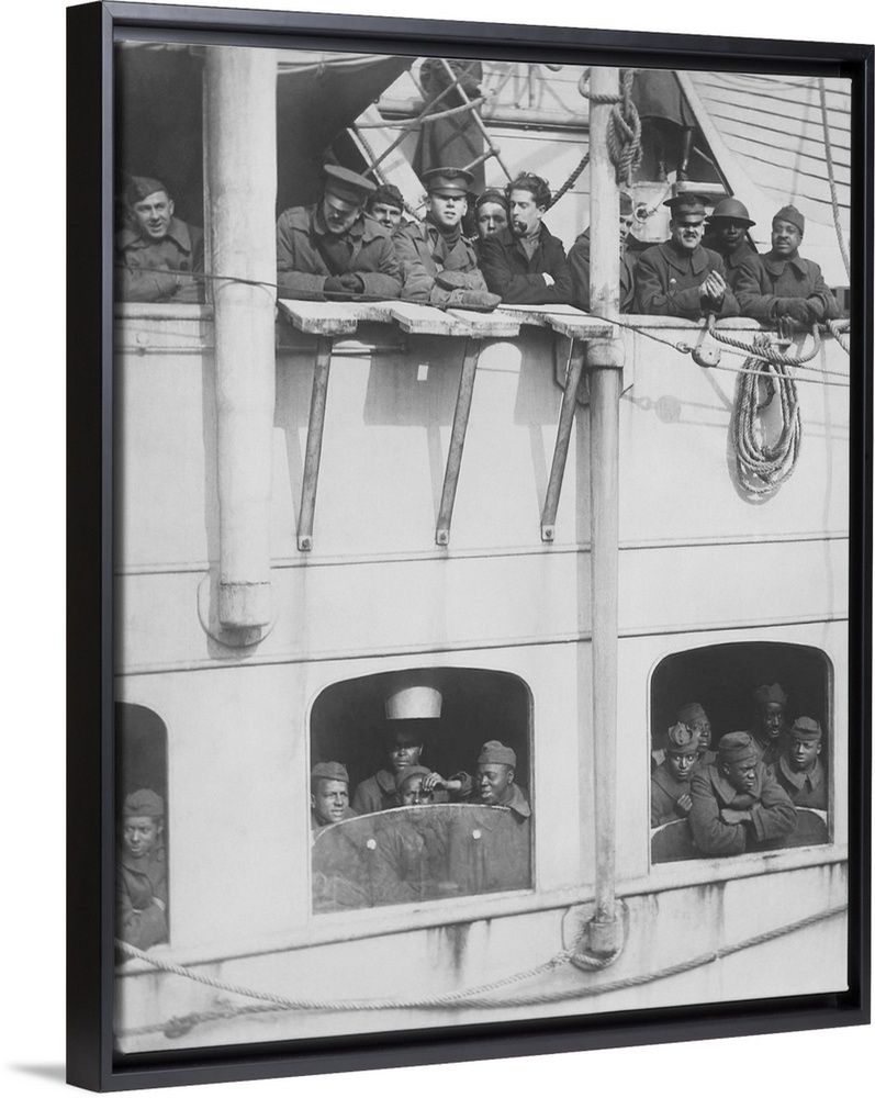 <p>French liner La France arrives with 15th Infantry, Negro fighters, 1917.</p>