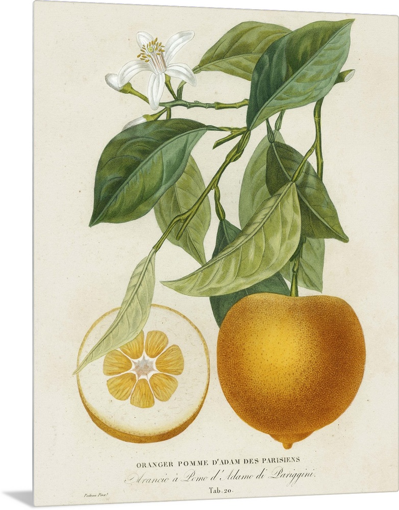 Art Food and Drink Fruit Lemons and Limes Illustrations Painting A. Risso Vintage Art Yellow Wall Art