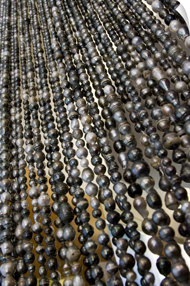 <p>South Pacific, French Polynesia, Society Islands, Bora Bora. Close-up of curtain of black pearls.</p>