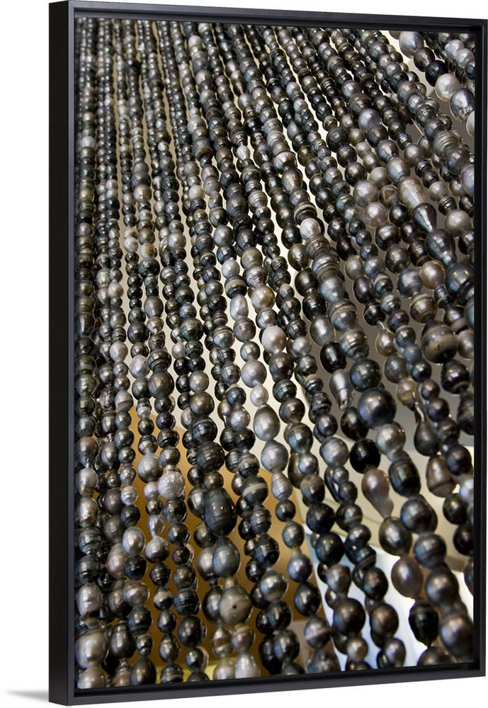 <p>South Pacific, French Polynesia, Society Islands, Bora Bora. Close-up of curtain of black pearls.</p>