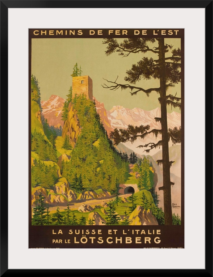 <p>ca 1915 French Railway travel poster promoting travel to Switzerland and Italy through the newly opened Lotschberg Tunnel.</p>
