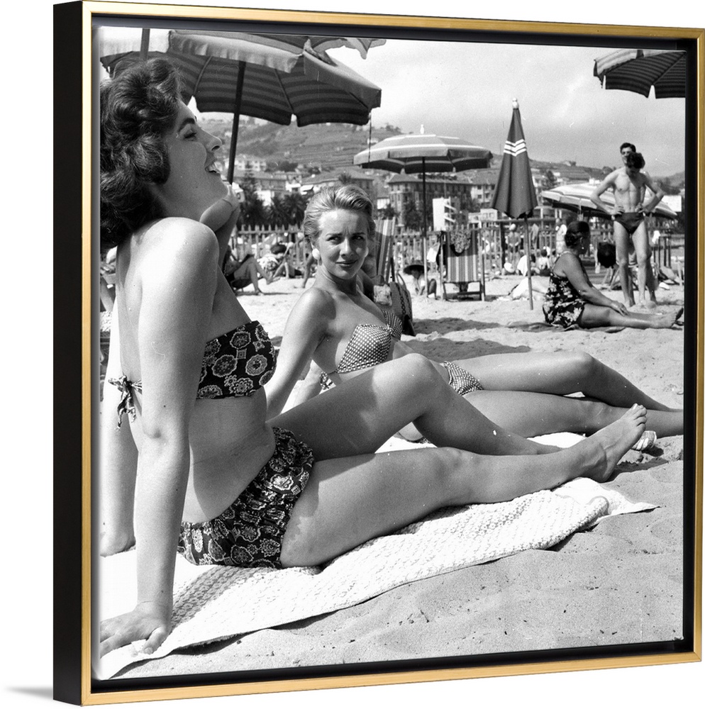 <p>23rd July 1955: British fashion models cruising along the Cote d'Azur on board the 'Bonaventura' yacht relax in a beach on the French Riviera Original Publication: Picture Post - 7850 - Five Girls On A Yacht - pub 1955</p>