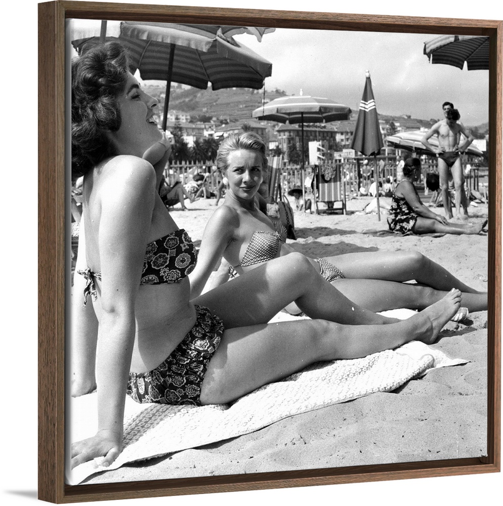 <p>23rd July 1955: British fashion models cruising along the Cote d'Azur on board the 'Bonaventura' yacht relax in a beach on the French Riviera Original Publication: Picture Post - 7850 - Five Girls On A Yacht - pub 1955</p>