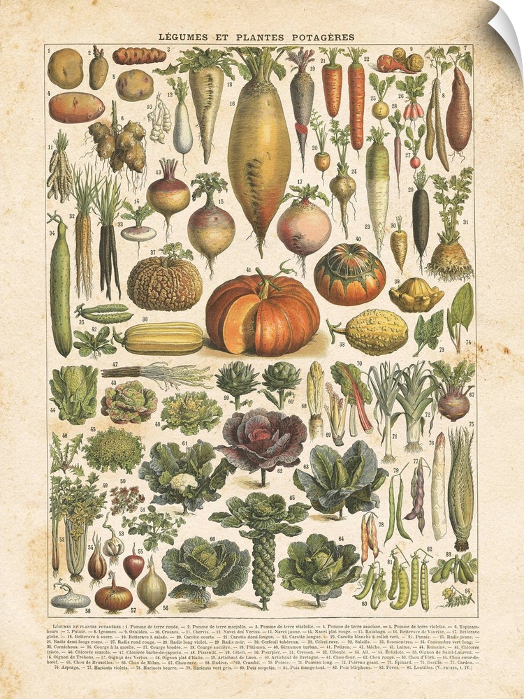 <p>Vintage style chart of labeled vegetables in French.</p>