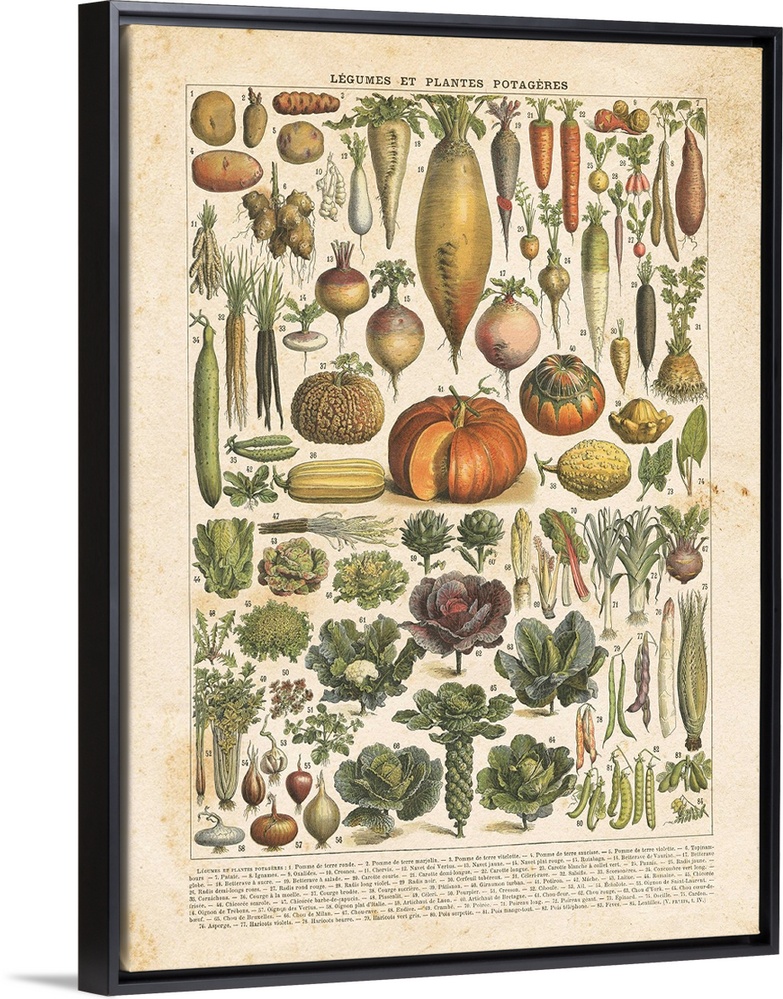 <p>Vintage style chart of labeled vegetables in French.</p>