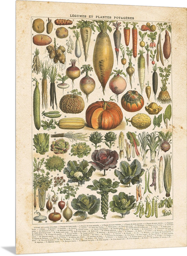 <p>Vintage style chart of labeled vegetables in French.</p>