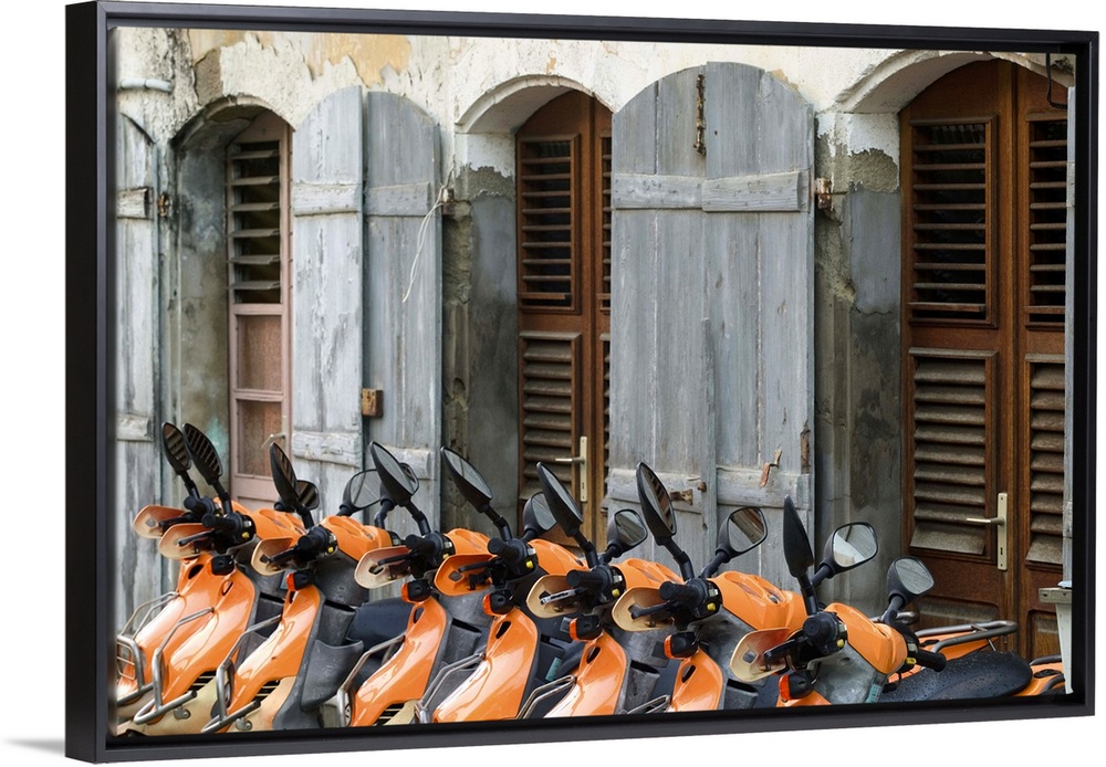 <p>FRENCH WEST INDIES (FWI)-Guadaloupe-Les-Saintes Islands-TERRE-DE-HAUT:.Bourg Des Saintes - Rental Motorbikes by Ferry Dock</p>