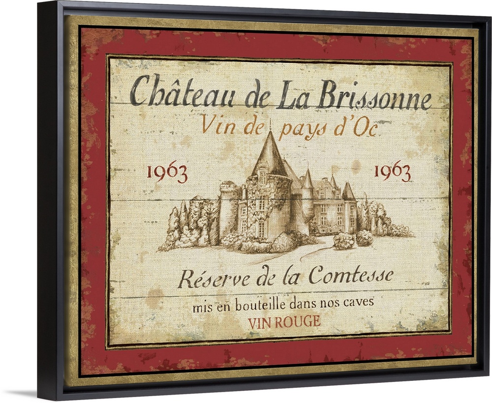 <p>Big canvas of a Chateau de la Brissonne brand French wine label featuring a castle and the year 1963 in script.</p>