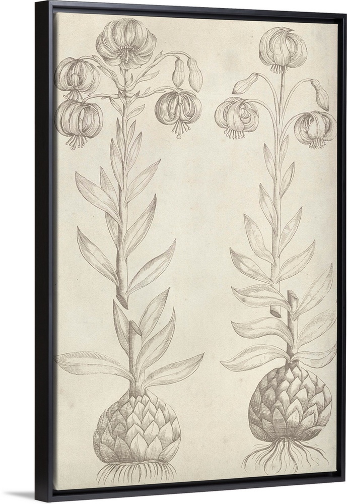 <p>This line illustration has a vintage feeling and features two plants showing the blossoms at the top and roots at the bottom over a beige background.</p>