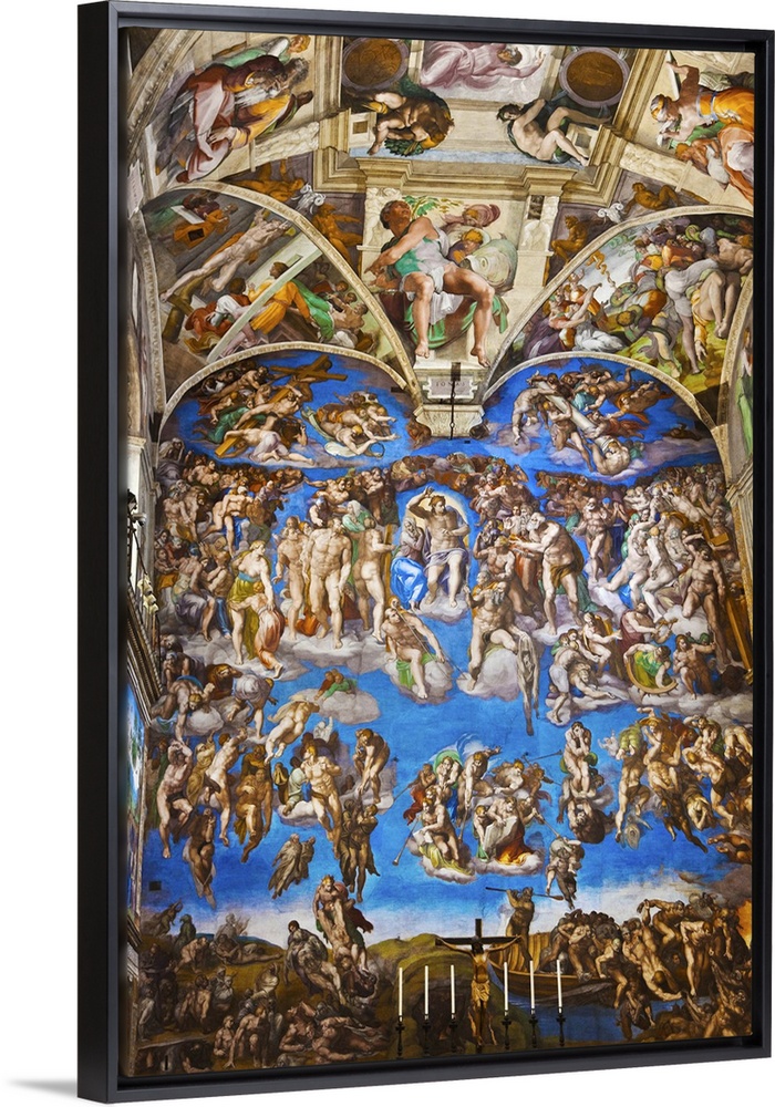 <p>The Last Judgement. Renaissance frescoes by Michelangelo in the Sistine Chapel . Vatican Palace Museums. Vatican City. Rome. Lazio . Italy.</p>