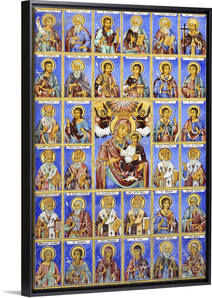 <p>Frescoes by Zahari Zograf in the exterior of the Nativity Church. Rila Monastery (Monastery of Saint Ivan of Rila), the largest Eastern Orthodox monastery in Bulgaria. A UNESCO World Heritage Site. Rila Mountains, Bulgaria.</p>