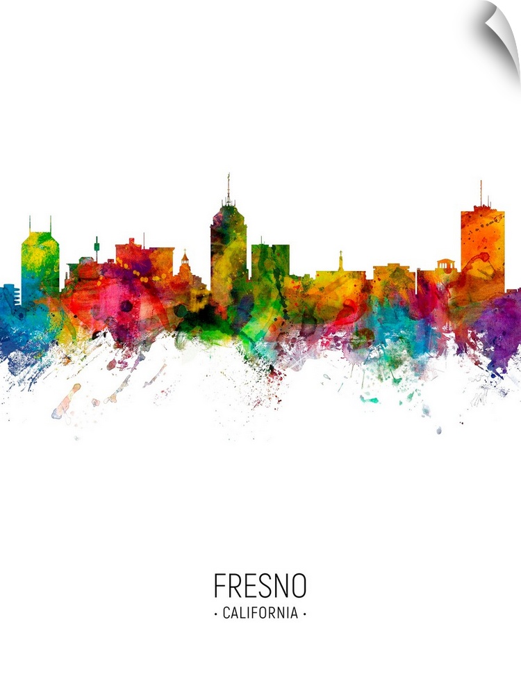 <p>Watercolor art print of the skyline of Fresno, California, United States</p>
