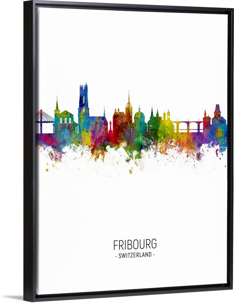<p>Watercolor art print of the skyline of Fribourg, Switzerland</p>