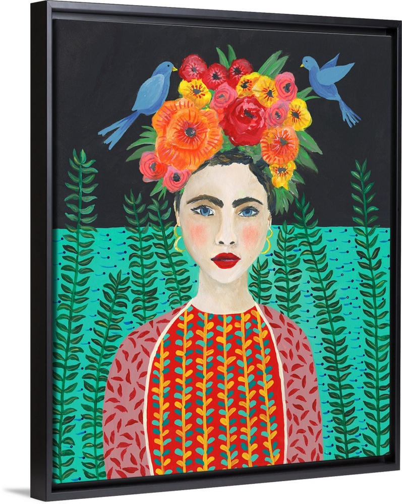 Art Eclectic Decorative Art Florals Frida Kahlo Green Wall Art Regina Moore Painting People Portraits