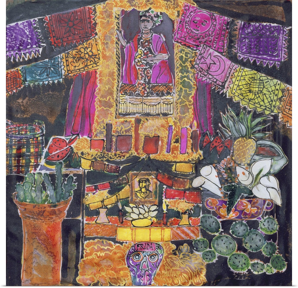 <p>Dyed silk painting of a shrine to the painter Frida Kahlo.</p>