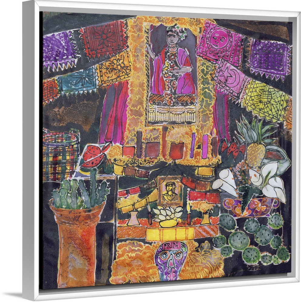 <p>Dyed silk painting of a shrine to the painter Frida Kahlo.</p>
