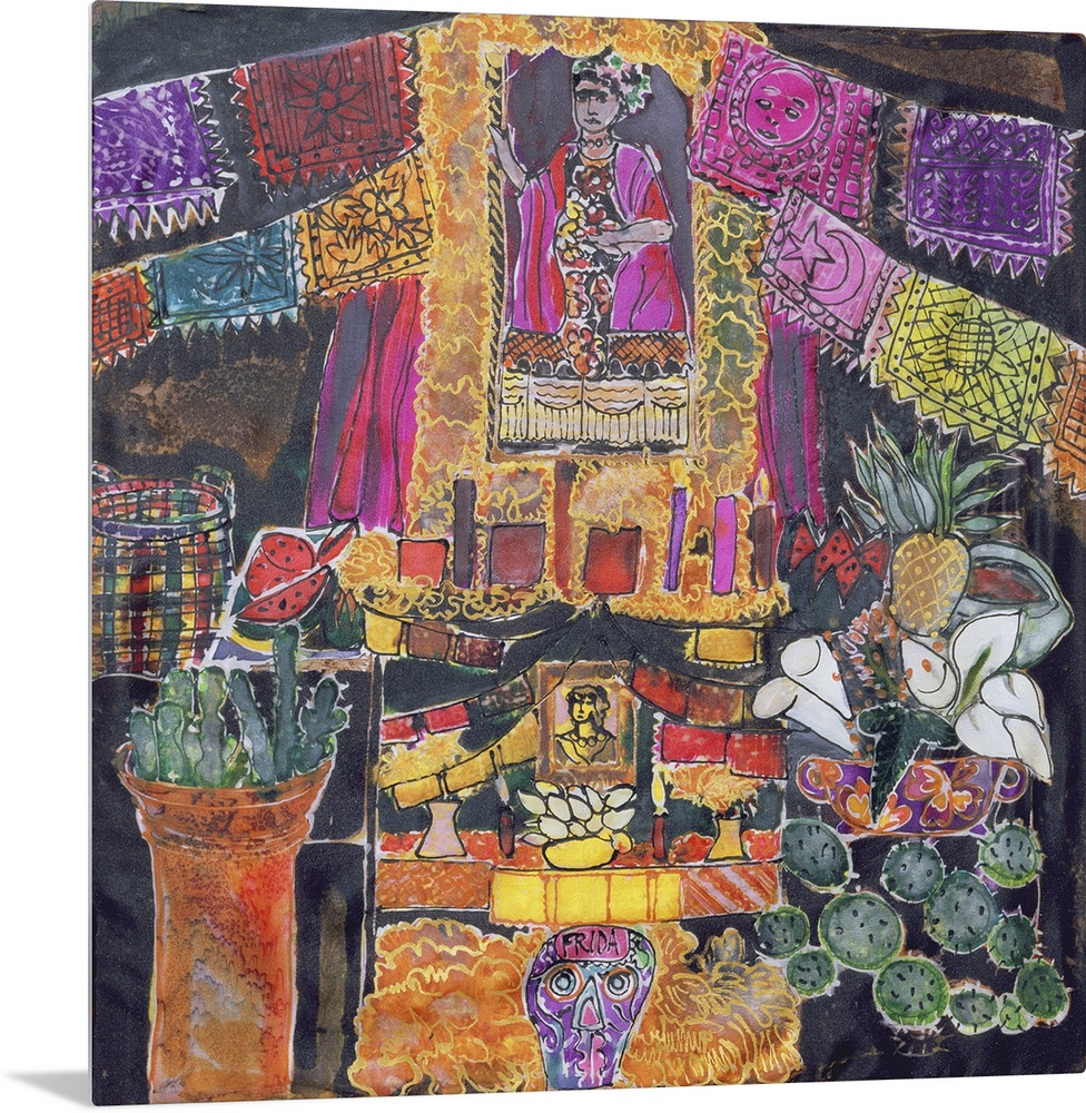 <p>Dyed silk painting of a shrine to the painter Frida Kahlo.</p>