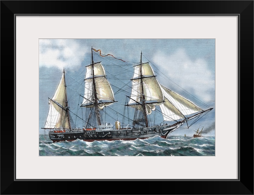 <p>Frigate 'Blanca' of the Spanish Navy aimed at a voyage of circumnavigation. Engraving by Capuz in 'The Spanish and American Illustration, ' 1886. Colored.</p>