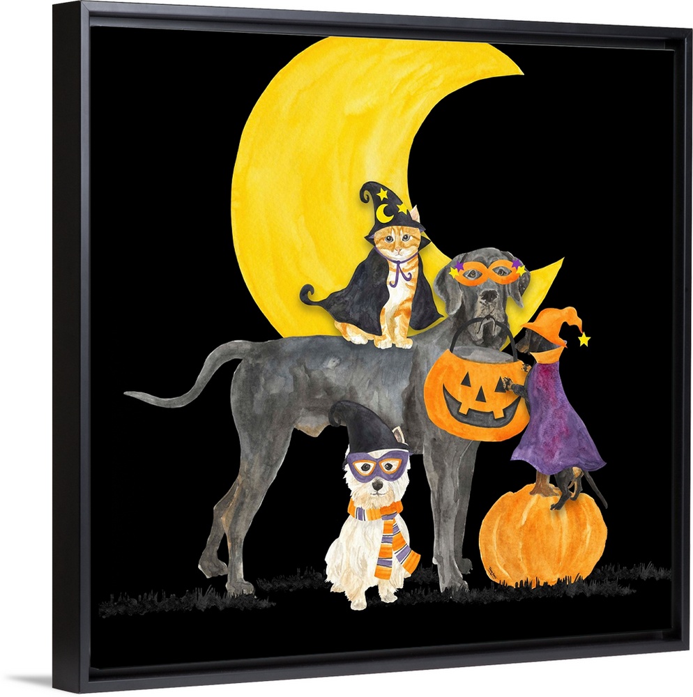 Art Decorative Art Holidays Halloween Painting Watercolor Wildlife Cat Dog