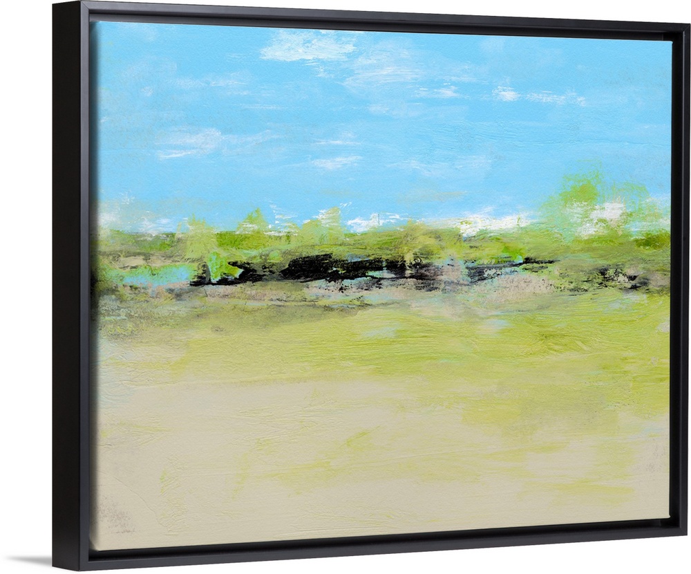 <p>Sharon Gordon creates abstract paintings inspired by the landscape surrounding her. She states, "I am and have always been completely captivated by places near or surrounded by water, especially the ocean. Experiencing a vista, particularly involving bodies of water, enhances the idea that an atmosphere can be an ever-changing, never-ending range of rhythm and volatility while remaining consistently whole." With her art, Gordon intends to evoke and "internal landscape," giving viewers the chance to transport themselves into a larger vista and recalling moments of time and space that they may have visited before.</p>