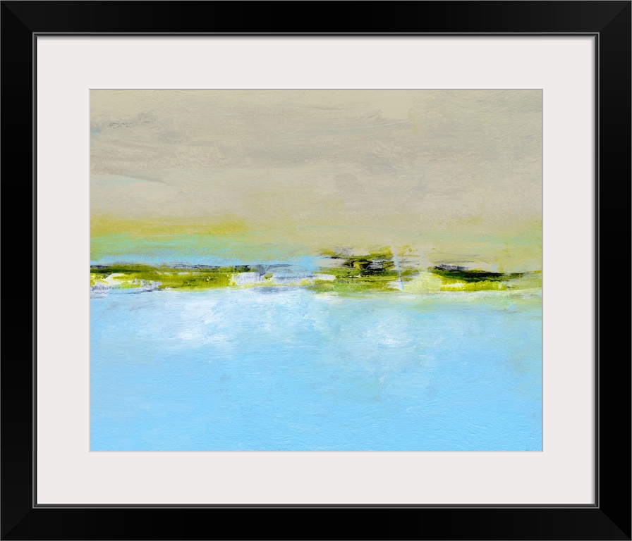 <p>Sharon Gordon creates abstract paintings inspired by the landscape surrounding her. She states, "I am and have always been completely captivated by places near or surrounded by water, especially the ocean. Experiencing a vista, particularly involving bodies of water, enhances the idea that an atmosphere can be an ever-changing, never-ending range of rhythm and volatility while remaining consistently whole." With her art, Gordon intends to evoke and "internal landscape," giving viewers the chance to transport themselves into a larger vista and recalling moments of time and space that they may have visited before.</p>