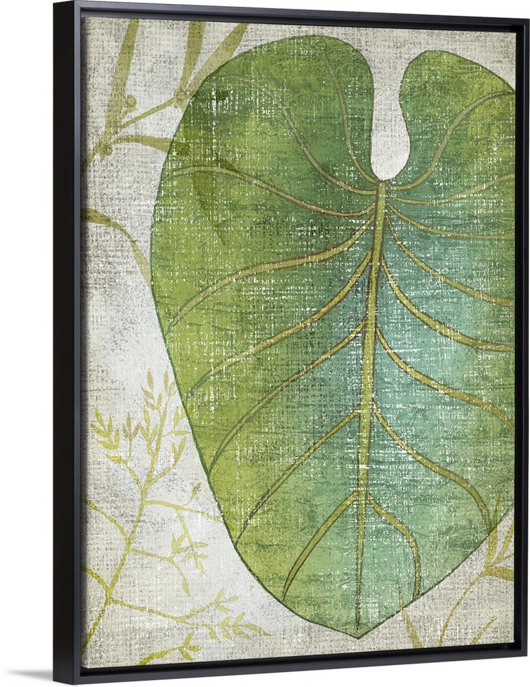 <p>Vertical decor with an illustrated tropical leaf on a textured neutral colored background.</p>